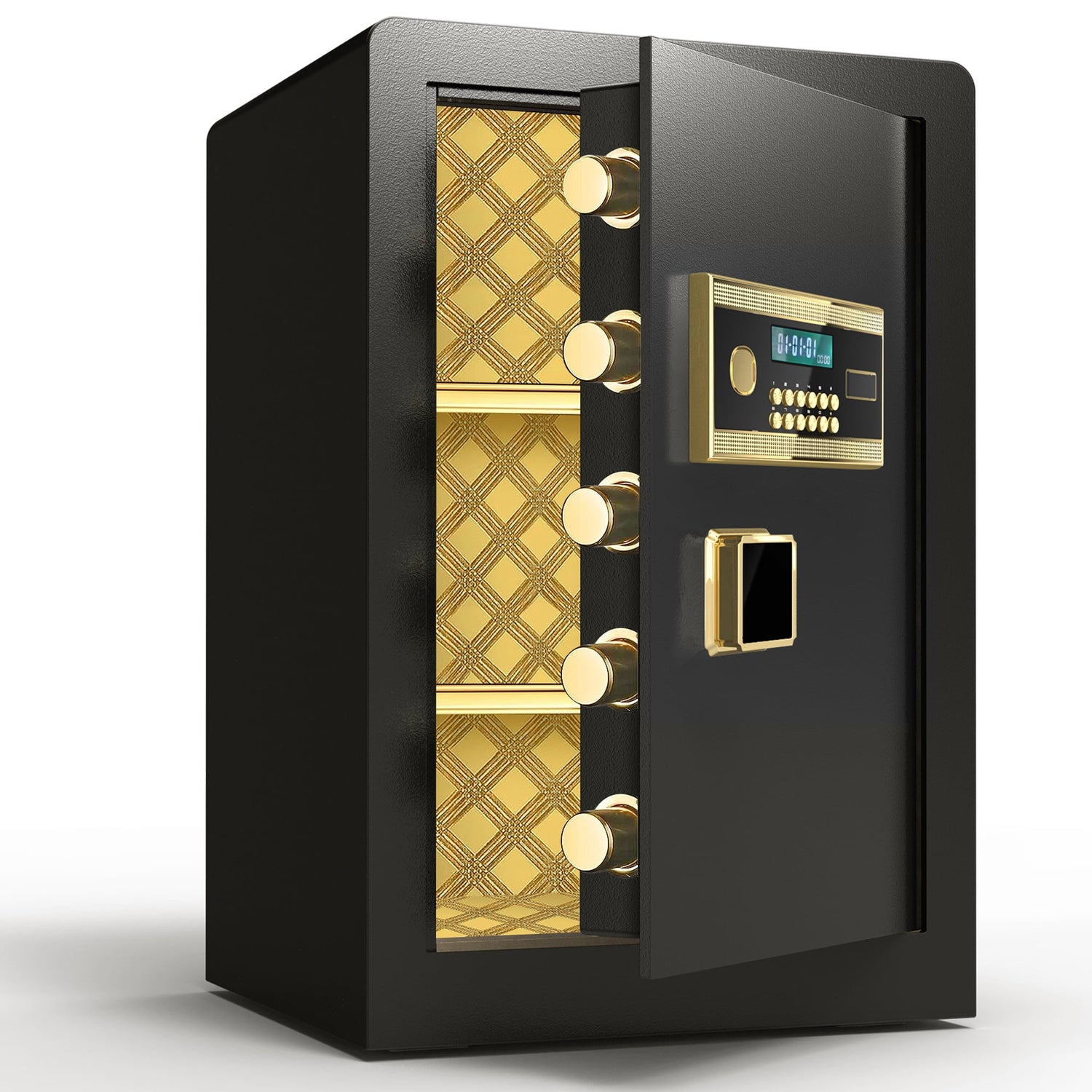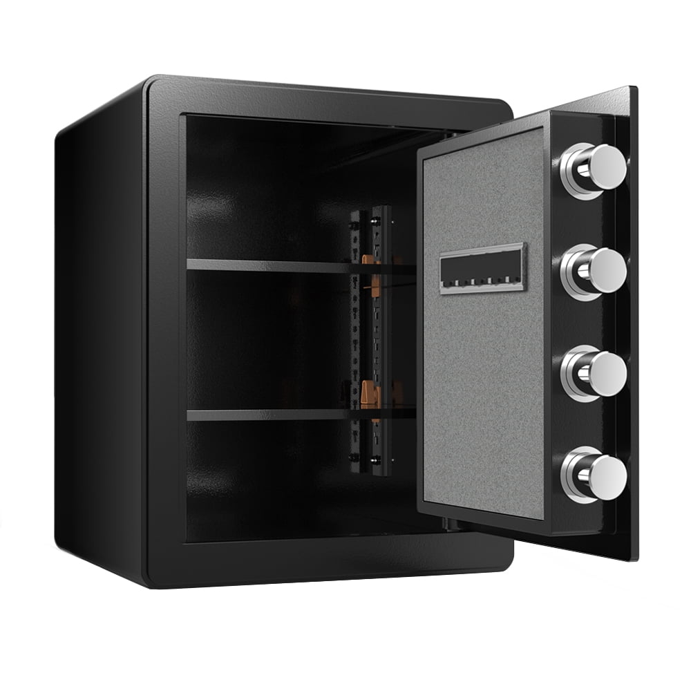 Sturdy Safety Barrier---Made of solid low-carbon alloy steel with super fire resistance; the home safe is also equipped with 4-round bolts and a thick solid door to ensure that it will not be forcibly unlocked.