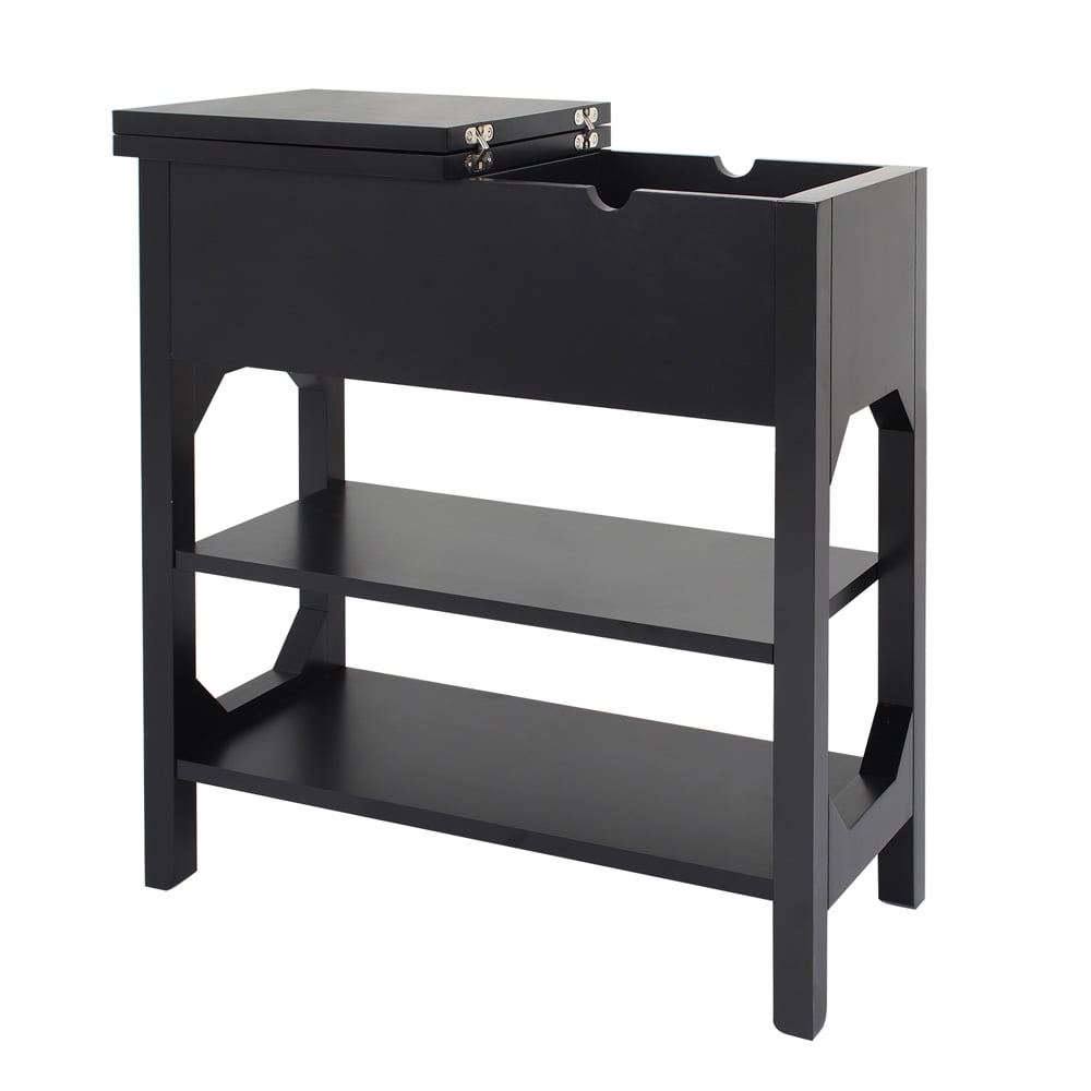 1-Drawer End Table, Sesslife Flip Top Storage Side Table for Living Room Bedroom, Modern Sofa Table with Storage Open Shelf, Wood Narrow Table for Corner Sofa Side, Black