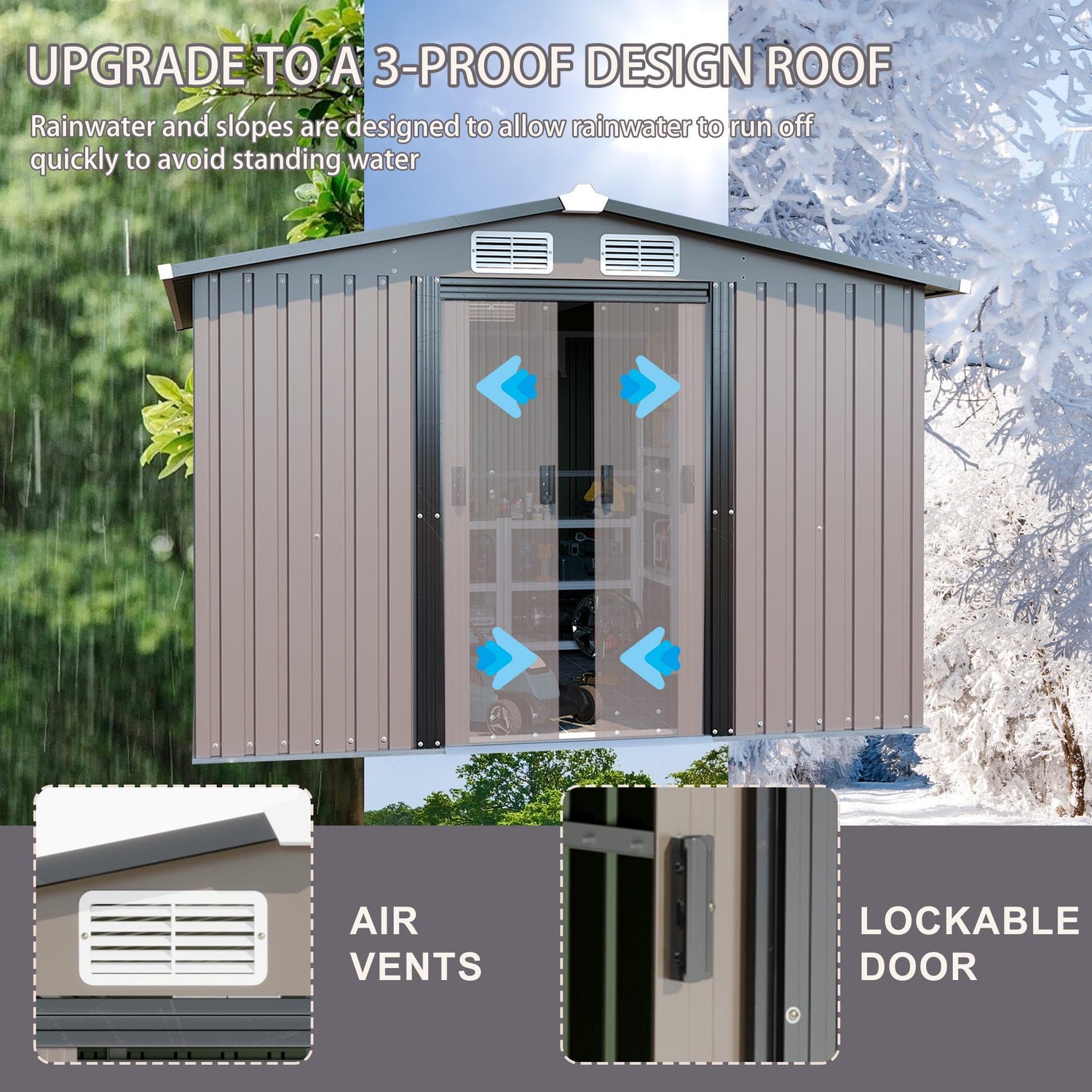 ---This metal garden storage shed utilizes an electro-galvanized steel process and paint treatment, making it suitable for various climates. You won't have to worry about rusting metal. The all-metal storage shed withstands sun exposure without deformation, is non-corrosive, UV resistant, and boasts excellent moisture-proof performance.
