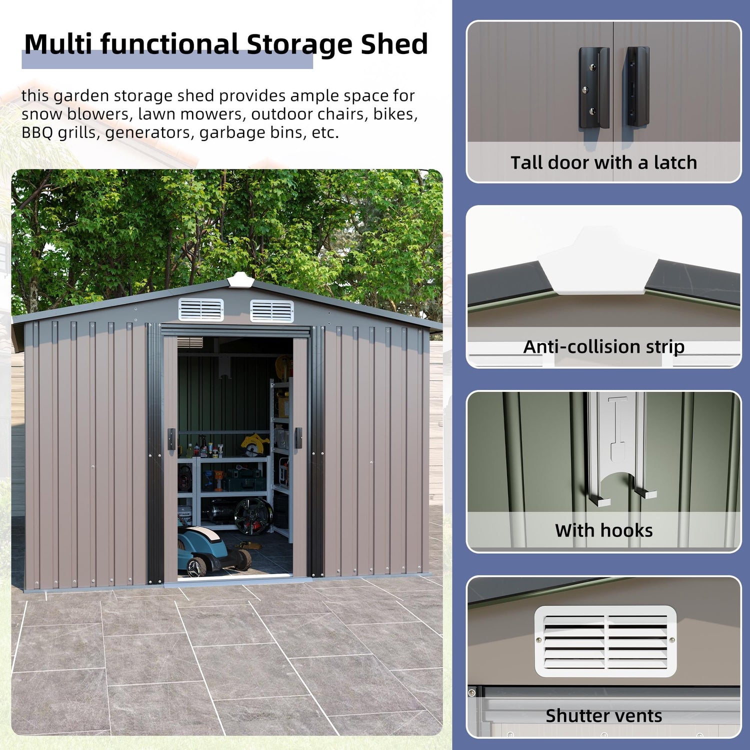 10' x 8' Metal Outdoor Storage Shed, Large Sheds and Outdoor Storage House with Lockable Door, Garden Storage Shed Pet House for Lawnmower, Garden Tools, Bike, Garage