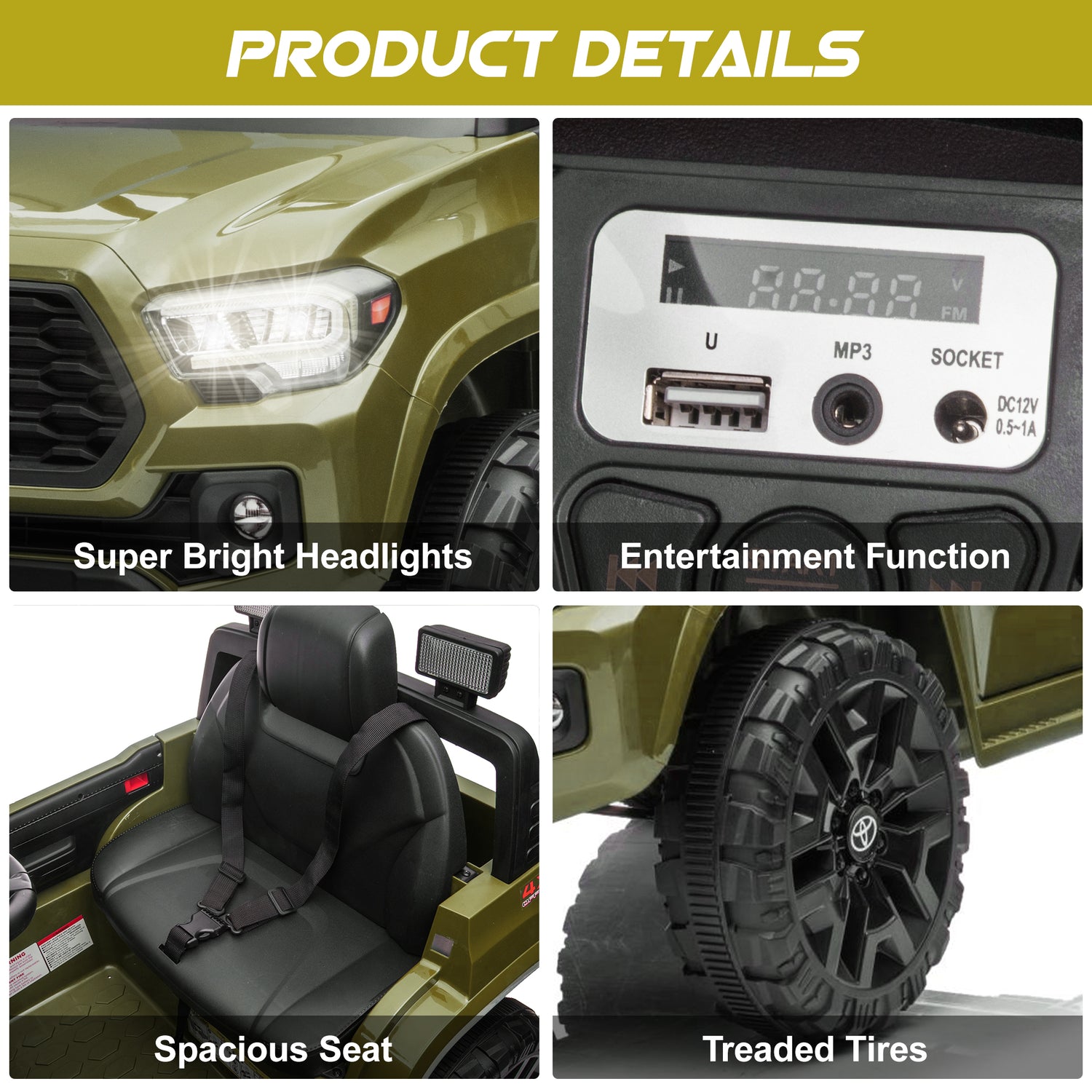 12V Kids Ride-on Truck, Toyota Tacoma Remote Control Electric Ride On Car for Boys Girls, Green, DT60
