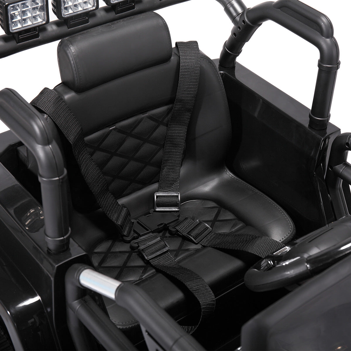 In order to allow children to adapt quickly and learn to drive, the kid car to ride in equipped with a soft start system that allows children to gradually adapt to the acceleration process, which can prevent children from being frightened by sudden acceleration or braking. 12V ride on car with four-wheel spring suspension ensures smooth driving; the large seat with seat belts ensures safe and comfortable driving.
