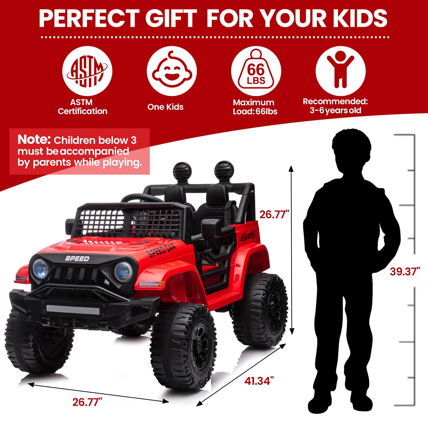 Designed for kids aged 3-5 years old, this battery-powered electric ride on truck is a wonderful Birthday or Christmas gift for little boys or girls. The ride on toy will accompany your kids and create cherished childhood memory.