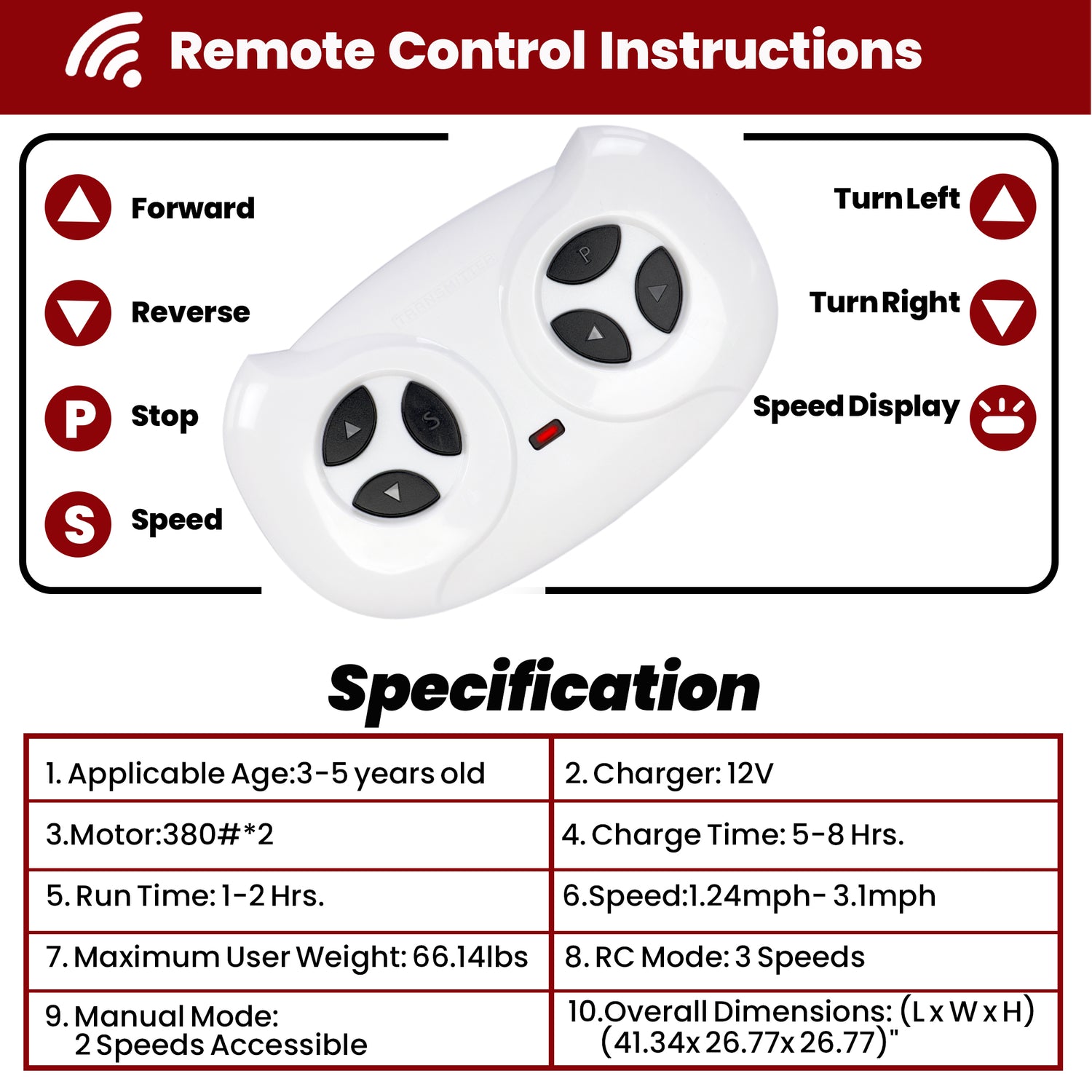 - RC Mode: 3 Speeds Options