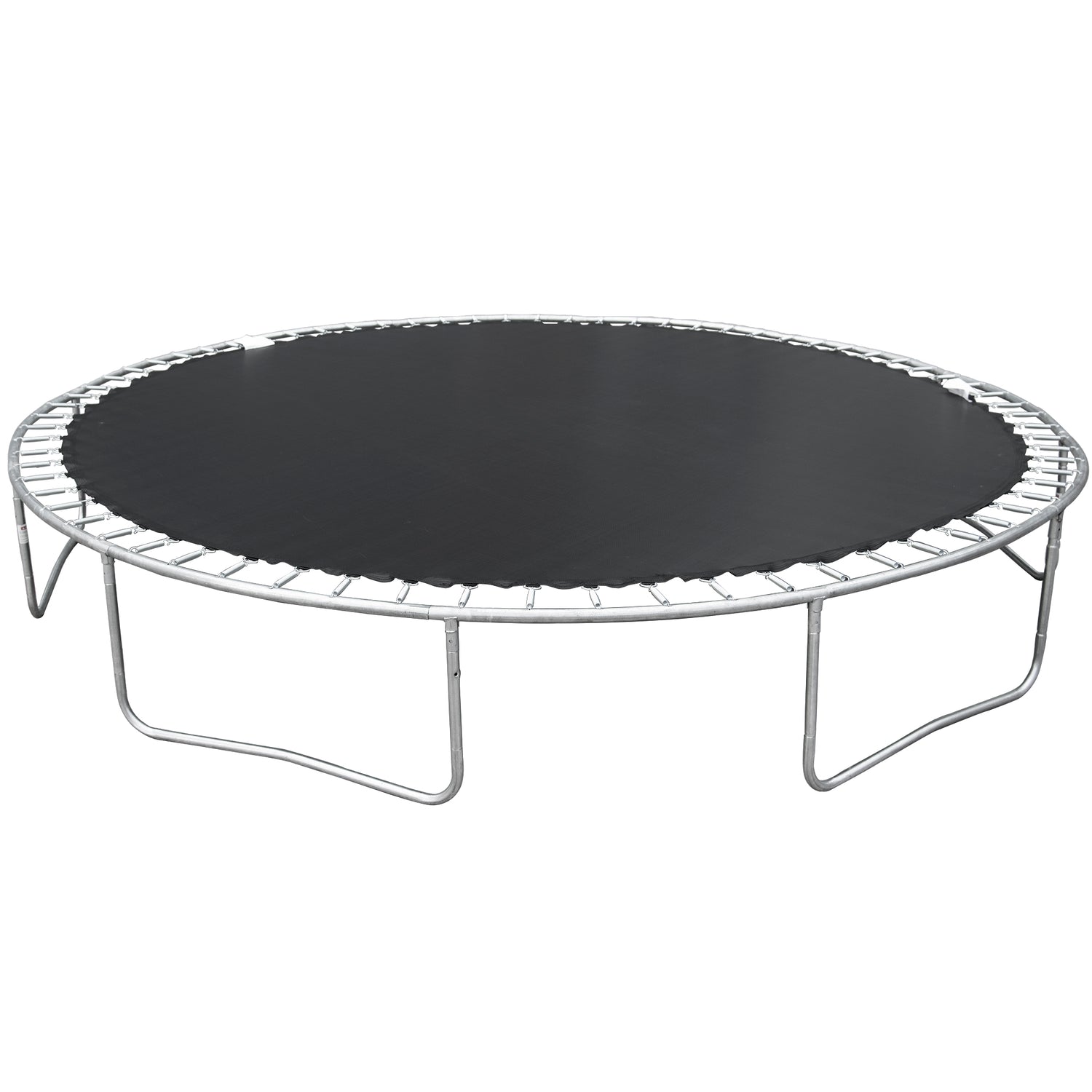 Recreational trampoline is supported by 6 W-shaped legs. Compared with U-shaped legs, it brings more contact points and contact area, providing stable and strong support.