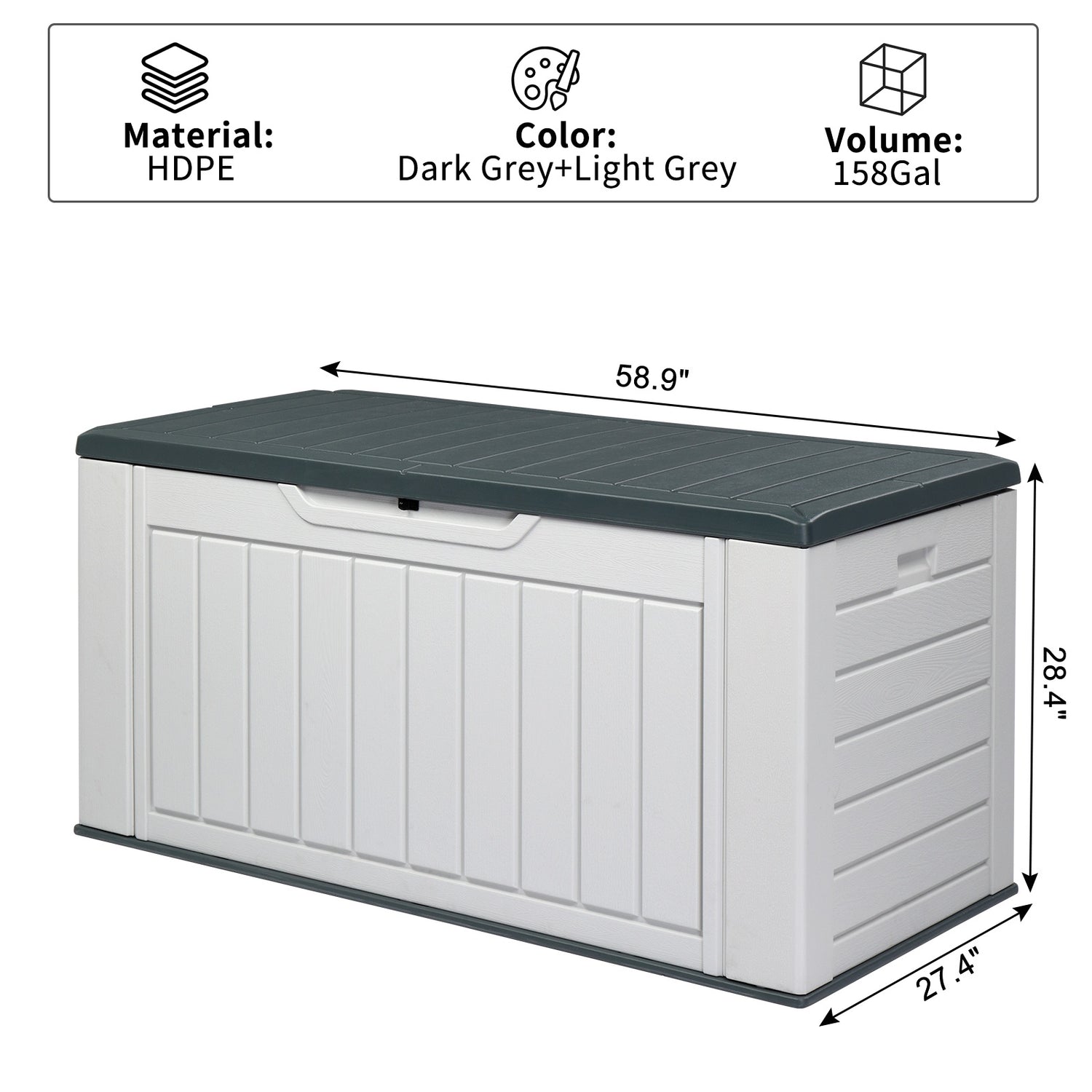 158 Gallon Outdoor Storage Deck Box Waterproof, Large Resin Patio Pool Toy Storage Box, Garden Backyard Outdoor Storage Bin for Patio Cushions, Gardening Tools, Gray