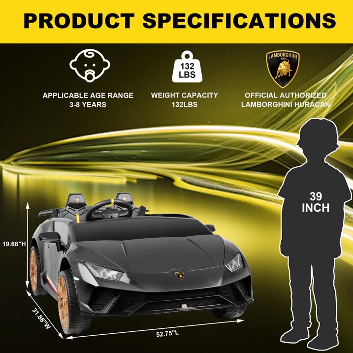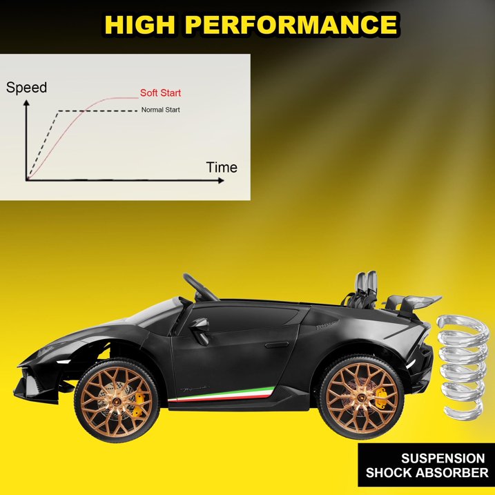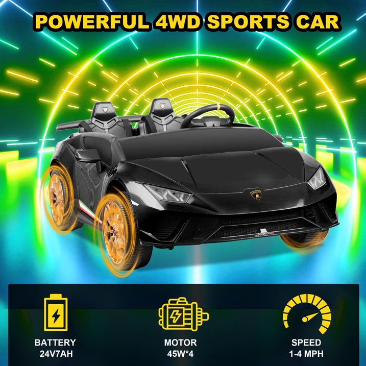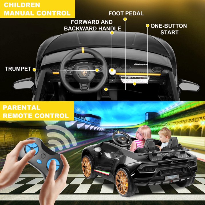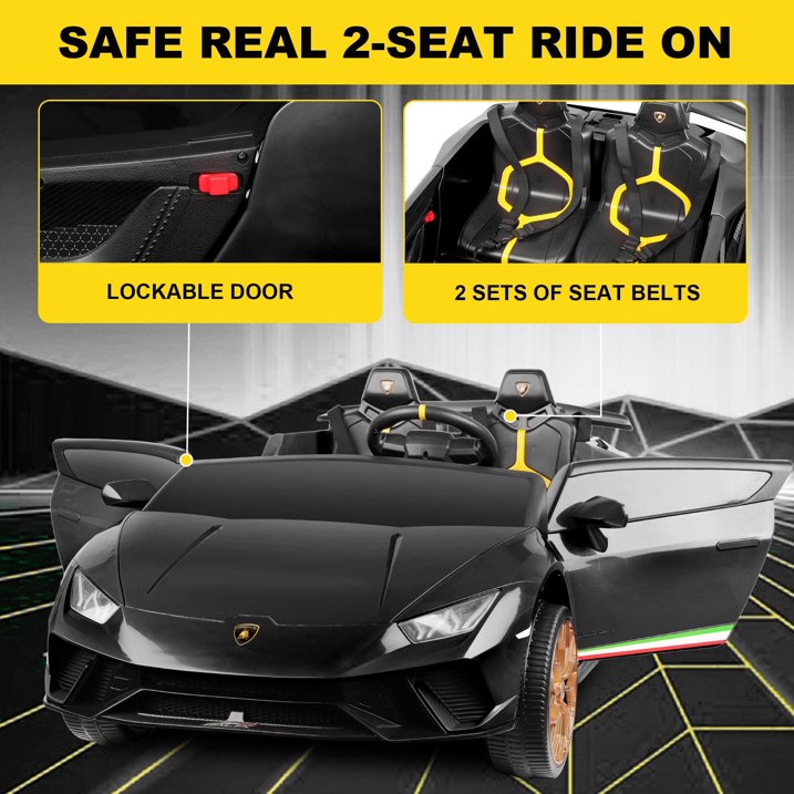 2 Seater Ride on Car for Big Kids, Lamborghini Huracan 24V Powered Ride on Toy with Remote Control, Electric Toy Car for Kids Toddlers 3-8, 4 Wheelers Car With Bluetooth & Light