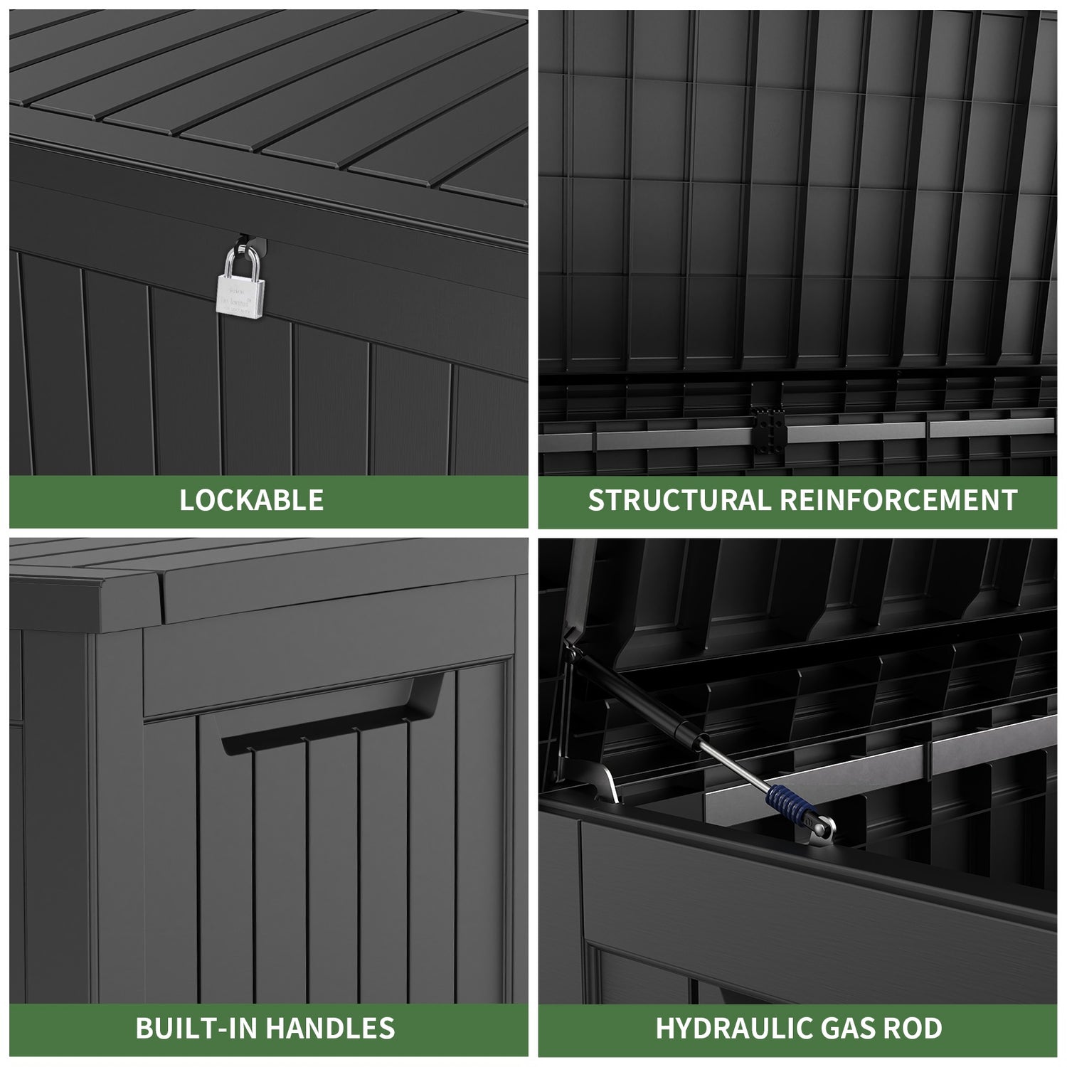 Unmatched Storage Capacity---Embrace summer with open arms and our newly expanded 230-gallon deck storage box. Whether it’s bulky patio cushions, a trove of kids' toys, a full array of garden tools, or a complete set of pool accessories, this box swallows it all with room to spare.