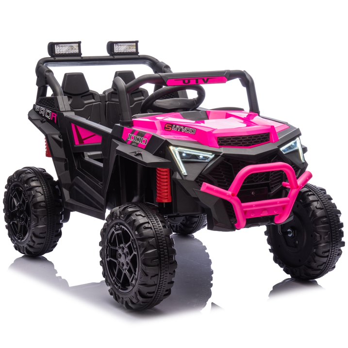 24V Kids Electric Ride on Cars Toy, 400W Power Ride on UTV Toy With Remote Control, Music, Bluetooth, Four Wheel Suspension, LED Lights, Portable Handle, Electric Car for Boys Girls 3+, Pink