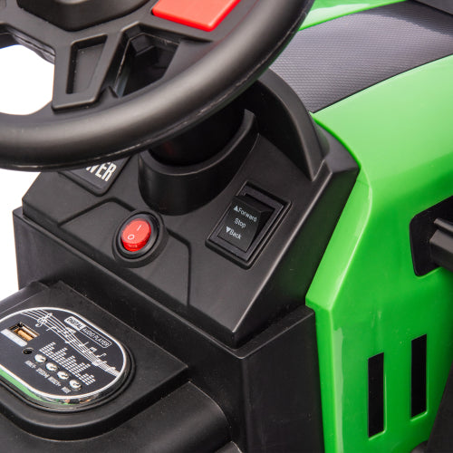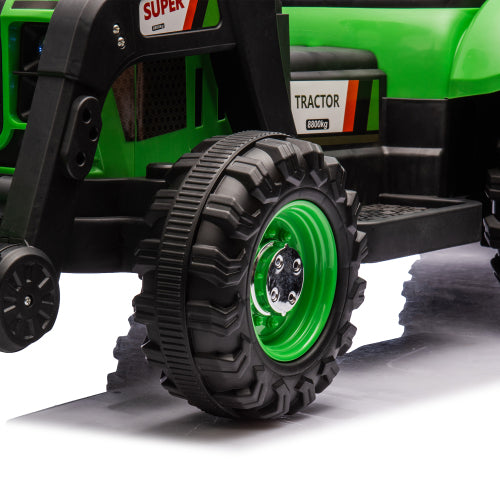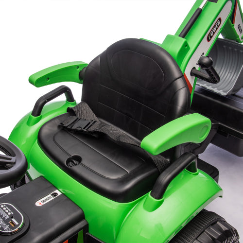 Introduce your child to hands-on construction play with the 24V Ride-On Electric Tractor Toy—a rugged and feature-packed vehicle that transforms any outdoor space into a dynamic building site. This electric toy car features 4-in-1 construction attachments, including a front excavator, bulldozer scoop, and dump bucket, allowing kids to explore multiple roles and activities. Whether scooping sand, hauling dirt, or pushing obstacles, each function delivers real working fun. Control is always within your reach with the 2.4GHz parent remote, which offers 3-speed settings, forward/reverse driving, and smooth steering. The progressive speed adjustment ensures kids of different ages can drive safely while building confidence. Designed for interactivity, this ride-on includes Bluetooth connectivity, letting you stream music directly to the built-in speaker. Bright LED tail lights activate when in motion, enhancing safety and realism during dusk or low-light play. The innovation continues with a 180° swivel seat, allowing kids to switch between driving and digging in seconds. Paired with the manual backhoe lever, children can enjoy tactile, battery-free excavating that promotes motor skill development and imaginative role-play. Finally, the included detachable wagon makes every trip more exciting, whether heading to the park, beach, or backyard. It’s thoughtfully designed with a semi-covered top, keeping items shaded and secure while allowing easy access. Built from durable, child-safe polypropylene and certified by ASTM, CPSIA, and CPC standards, this ride-on tractor toy offers dependable fun, function, and safety for kids ages 3–6.
