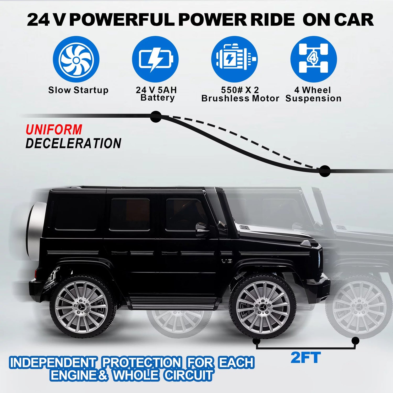 ⭐【Officially Licensed Mercedes-Benz】: Riding on Mercedes-Benz G500 officially licensed children's toy cars, equipped with a 24V4.5H super large battery and a 550 horsepower motor, will bring children endless power experience. Designed to perfection, Ride on toys offers your child an authentic and glamorous driving experience, making them feel like a mini luxury car owner.