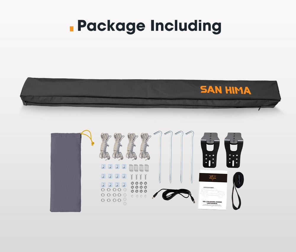 -Equipped with retractable aluminum alloy support poles, fixing ropes, and hooks, the awning can be securely anchored.