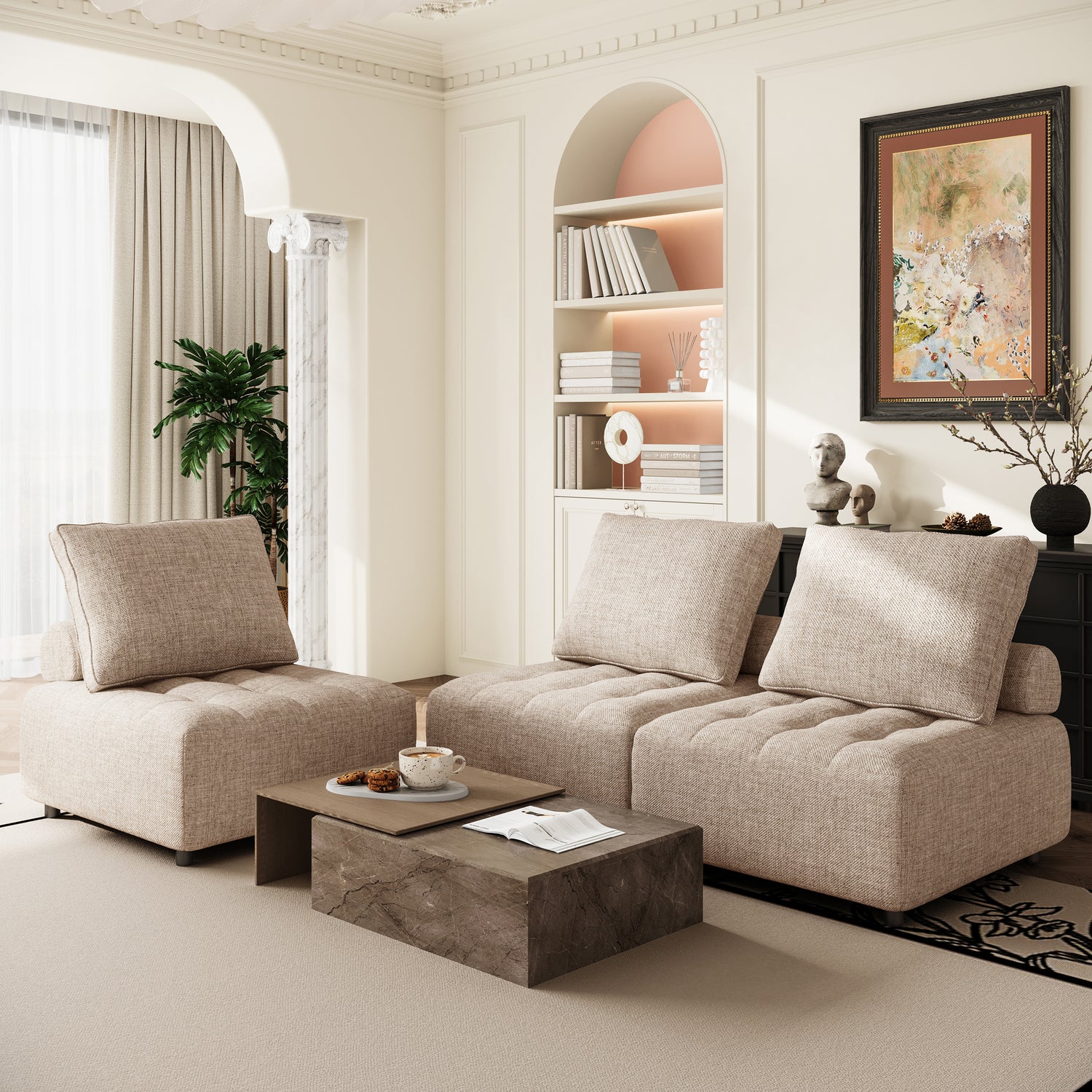 The 3-Piece Outdoor Sectional Sofa Set features an aluminum structure, providing durability and weather resistance for outdoor use. With its modular design, you can create various combinations to suit your space. The included waterproof sofa cover protects the set from sunlight and rain, while the fade-resistant cushions offer comfort and longevity. Perfect for any patio, balcony, or outdoor space, this modern patio furniture is easy to assemble and maintain.
