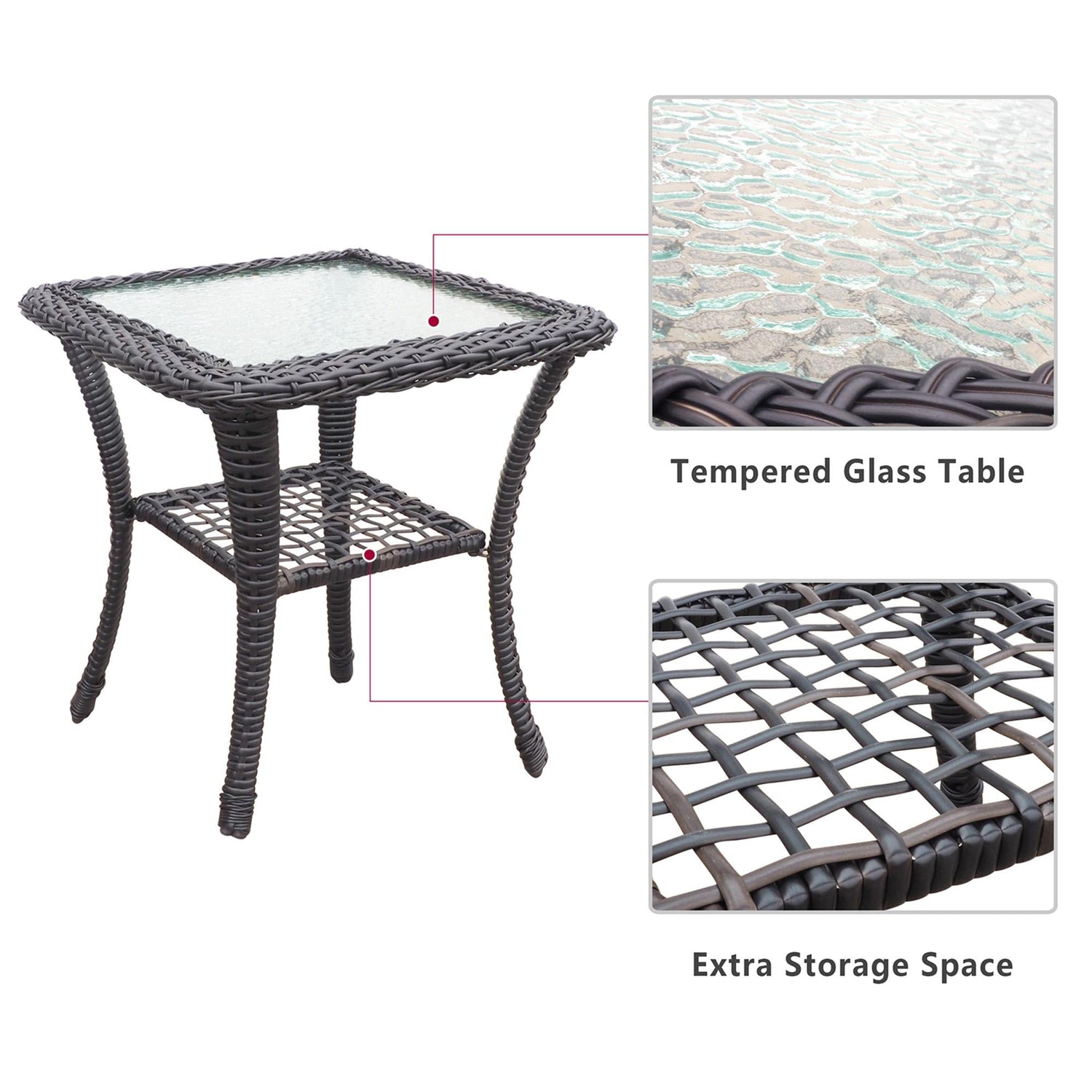 4. Double-layer Side Table---The outdoor side table features a tempered glass top, perfect for holding your beverages as you enjoy your afternoon tea. The double-layer storage design provides space for snacks, drinks, and more.