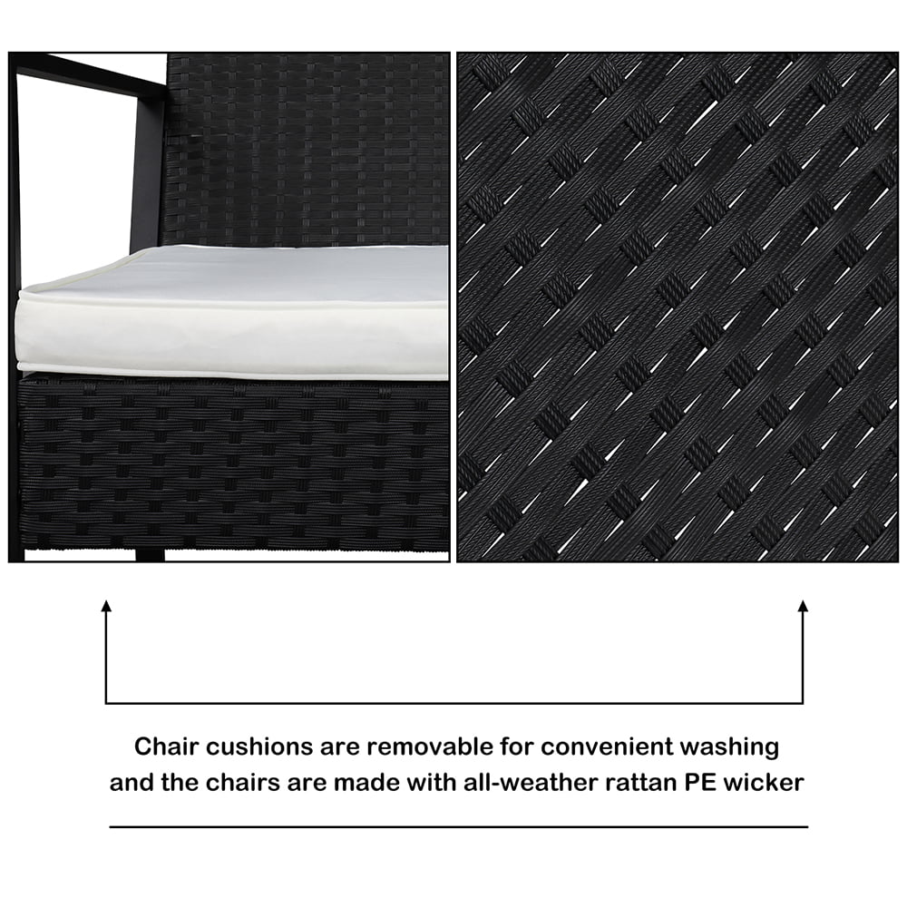 Outdoor chair set is woven from PE wicker rattan, which has the characteristics of strong toughness, resistance to deformation and cracking, resistance to ultraviolet, and environmental protection; the heavy-duty steel frame has strong strength, has undergone special anti-rust treatment, is strong and durable, and bears a large weight.