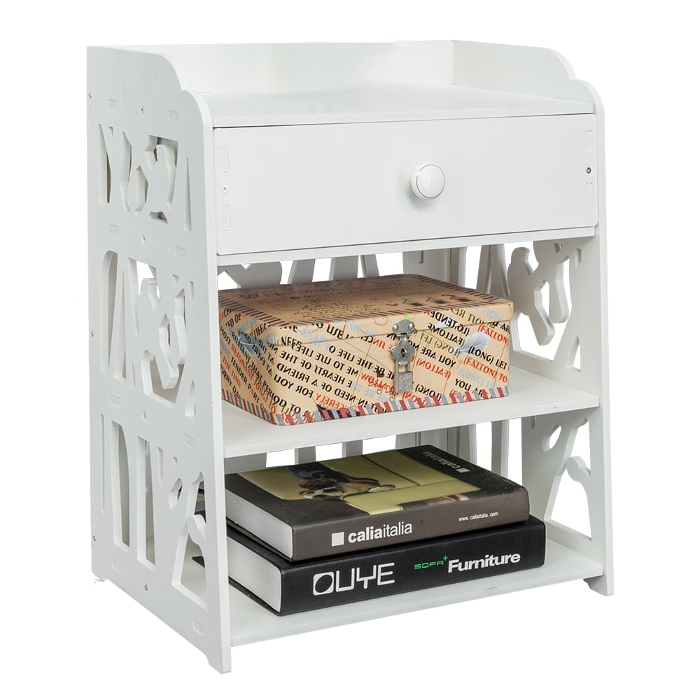 3-tier Rectangular Side Table, SESSLIFE Wood End Table with Drawer amd Shelves, Sofa Side Table Coffee Table, White Storage Sofa Table for Living Room