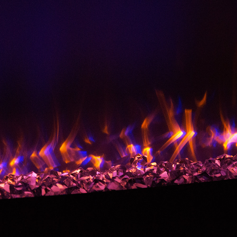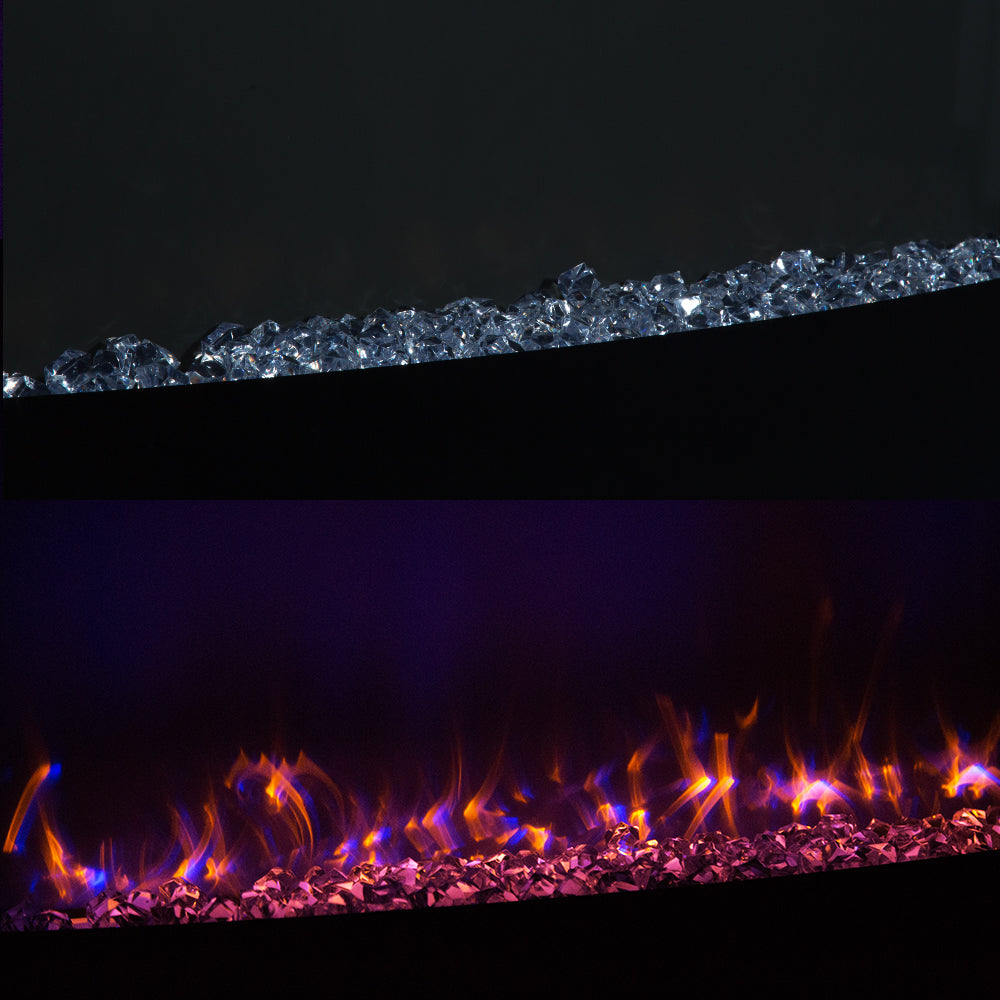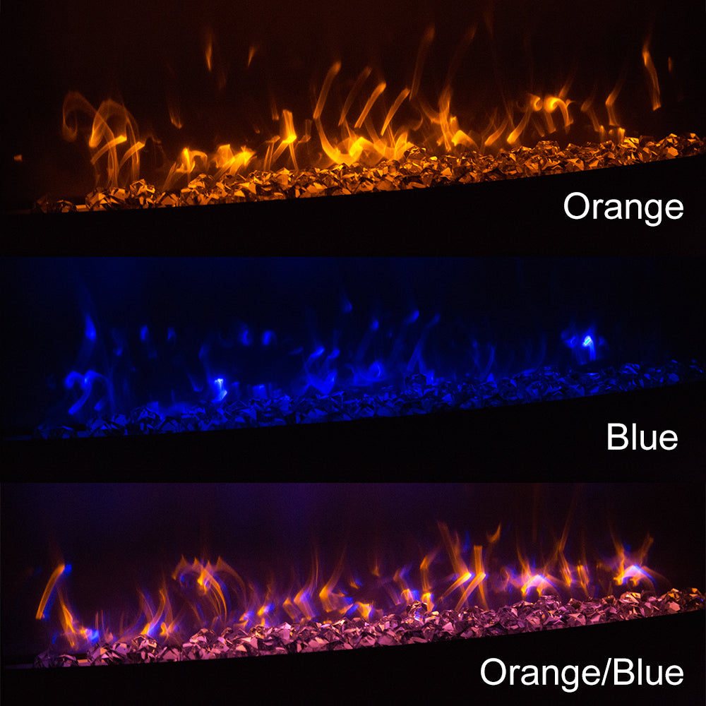 Wall mount fireplace can be controlled by side buttons or remote control. The electric fireplace mainly has 3 kinds of backlight colors, flame brightness adjustment, you can slowly contrast, adjust to your favorite color and state, to create a comfortable and warm atmosphere.