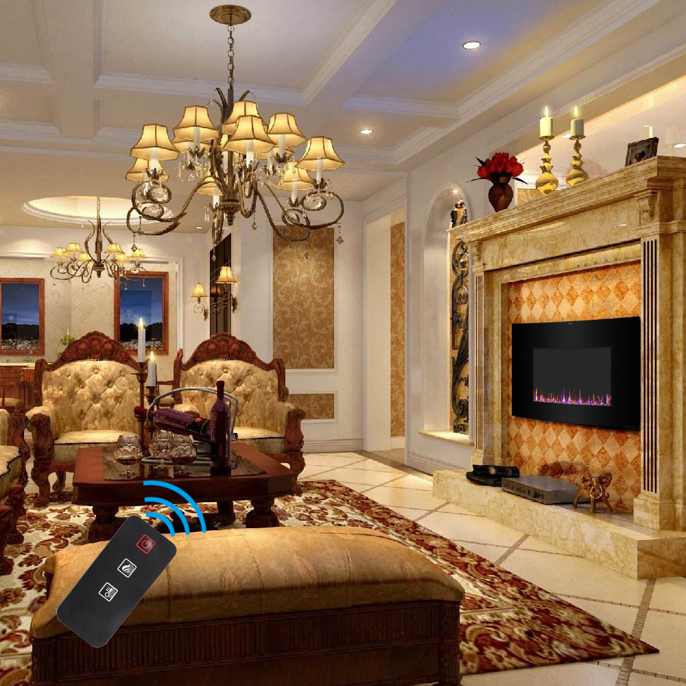 SESSLIFE 35" Wall Mounted Electric Fireplace, you can adjust the brightness or temperature of the flame through the console or remote control, 3 kinds of bright colors to choose to bring a unique and warm atmosphere. Through the high-tech LED flame to imitate a stronger burning effect, electric fireplace with timer function, no need to turn off manually, it can be wall-mounted or embedded installation.
