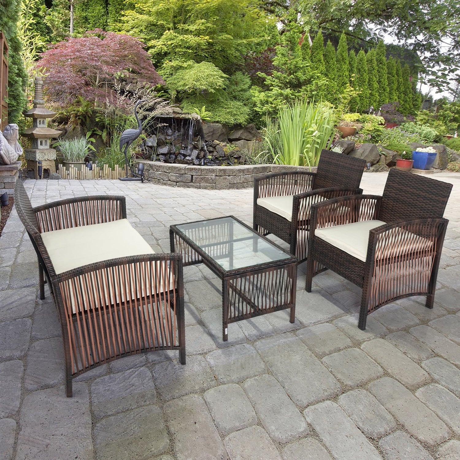 4 Pieces Wicker Patio Furniture Set, PE Rattan Outdoor Furniture Set, Patio Bistro Set with Glass Coffee Table, Outdoor Furniture Set for Garden, Backyard, Porch, Balcony, Poolside, JA2165