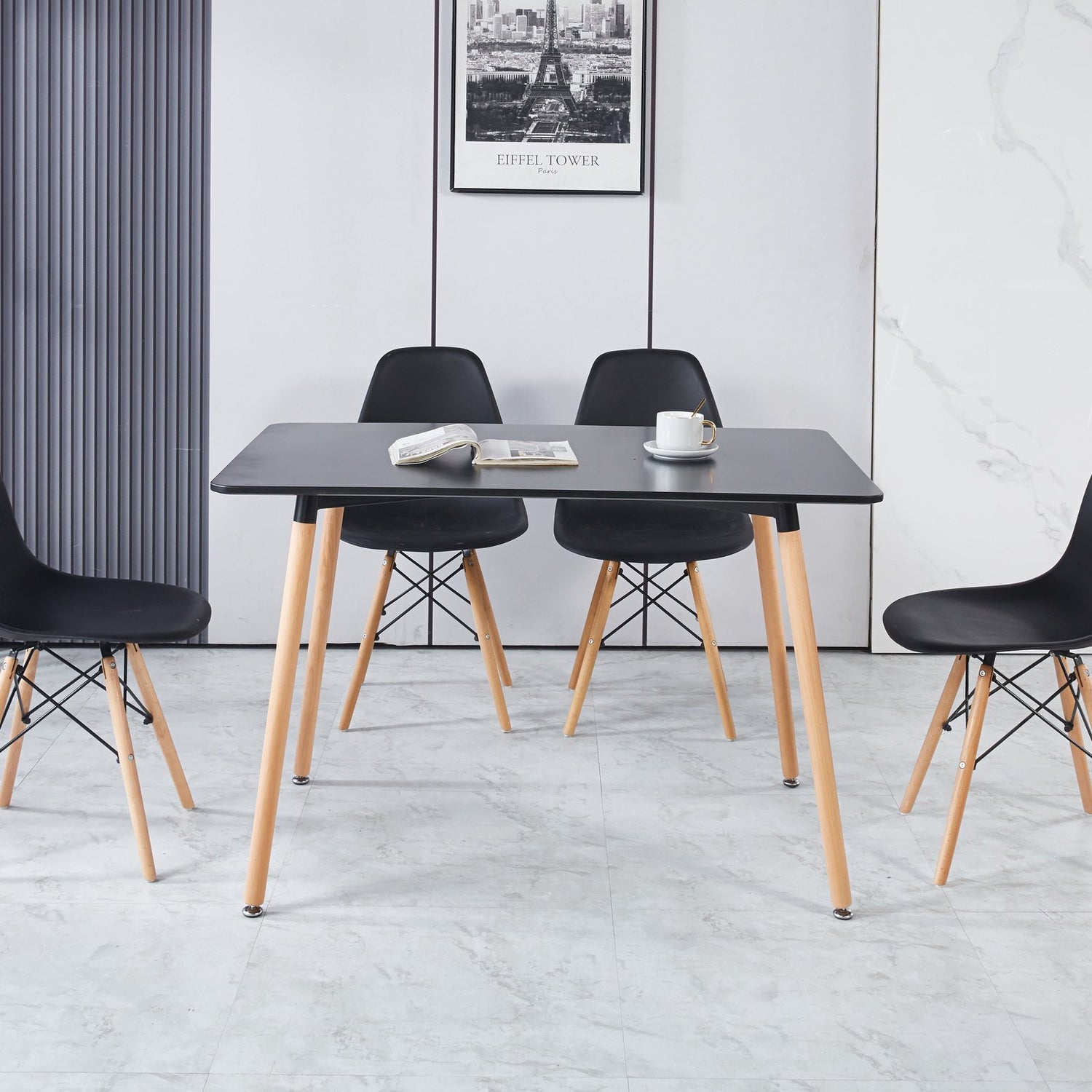 Elevate your dining space with our Modern Minimalist Wood Dining Table, designed to combine elegance, functionality, and durability. Crafted with a sleek wood tabletop, this table adds a touch of modern sophistication to any room. The powder-coated surface ensures long-lasting durability and resistance to corrosion, making it a perfect choice for everyday use.