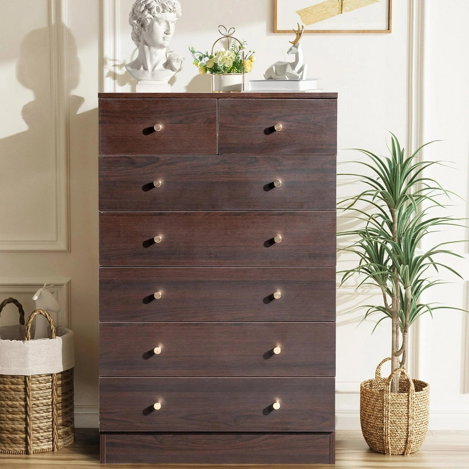 Drawer Dresser for Bedroom, Wooden Storage Dresser with Matt Gold Handle, Modern Chest of Drawers for Living Room