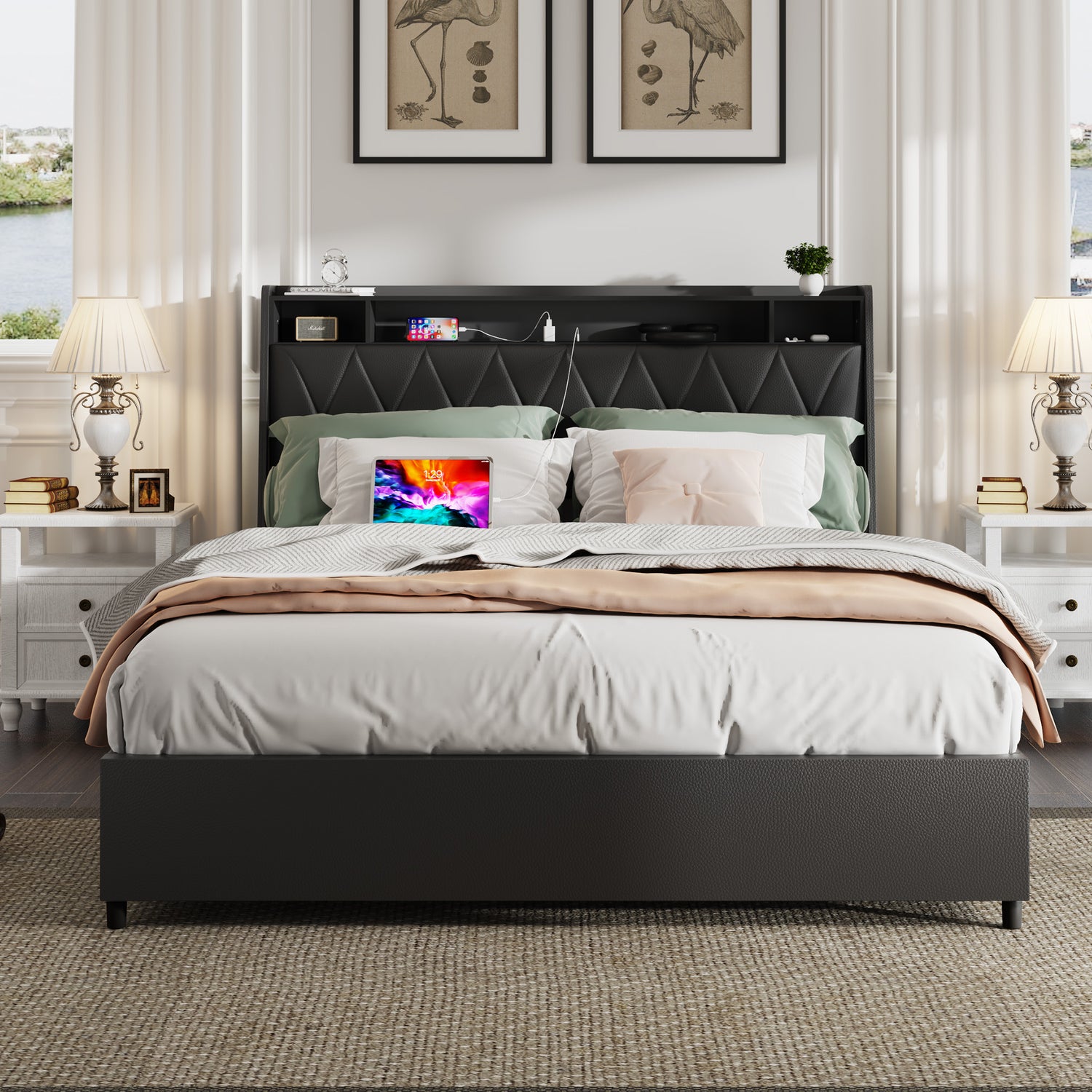 Discover the ultimate in comfort and functionality with our Modern Full-Size Upholstered Bed Frame, featuring an ergonomic headboard, integrated charging station, and ample storage with 4 drawers. This durable metal and wood platform bed frame ensures stability and noise-free sleep and eliminates the need for a box spring. It is perfect for those seeking a bed frame with a headboard, outlets, and storage solutions.