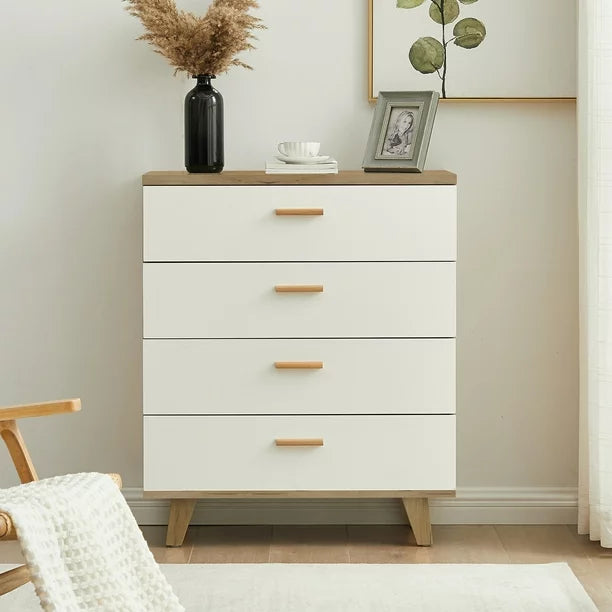 SESSLIFE 4 Drawer Chest, Wood Storage Dresser Cabinet, Craft Storage Organization, Makeup Drawer Unit for Closet, Bedroom, Office, White