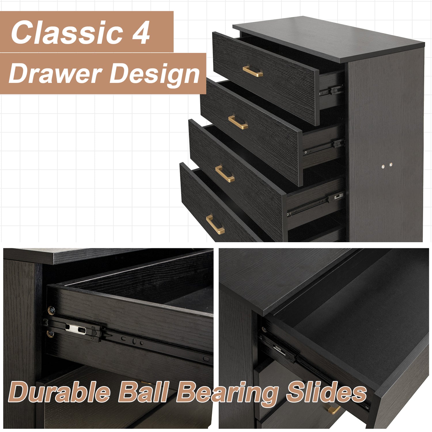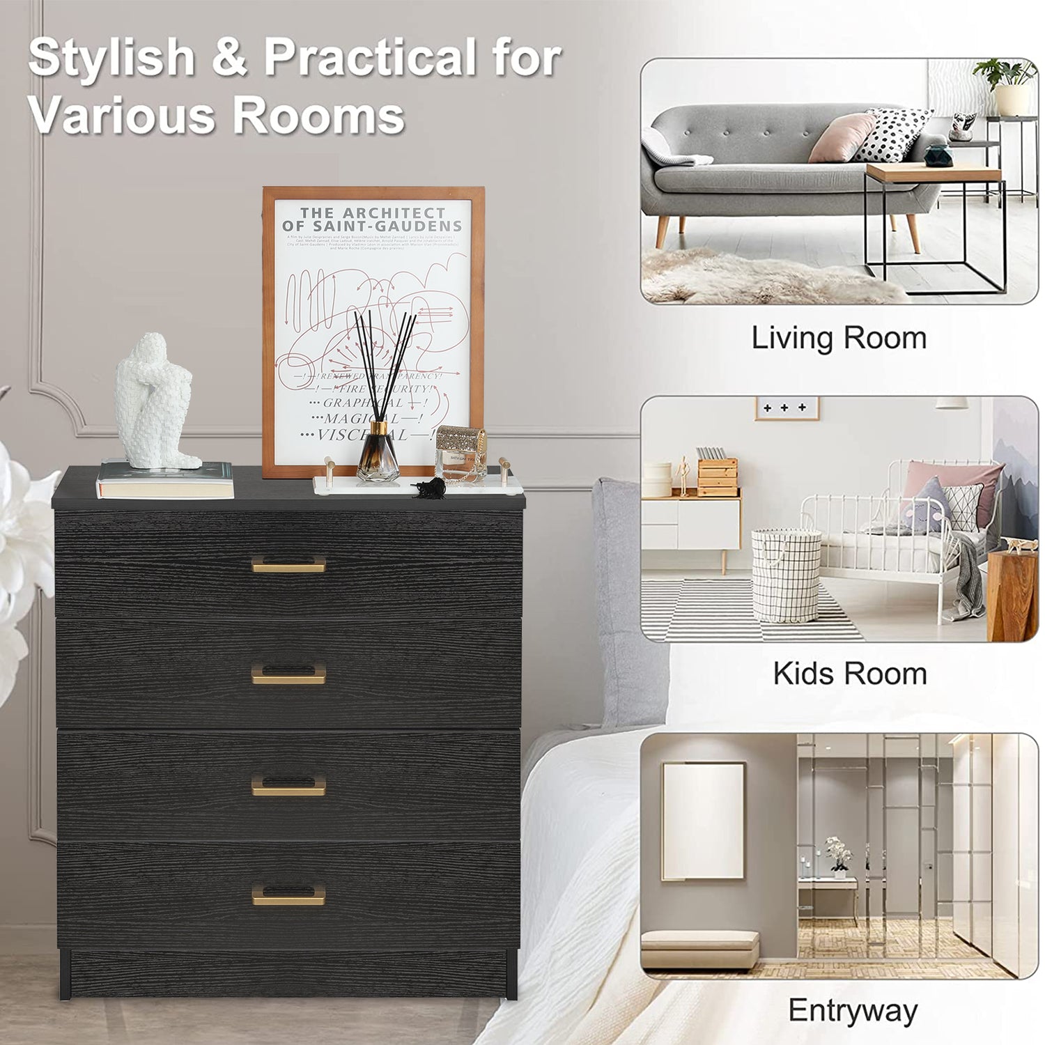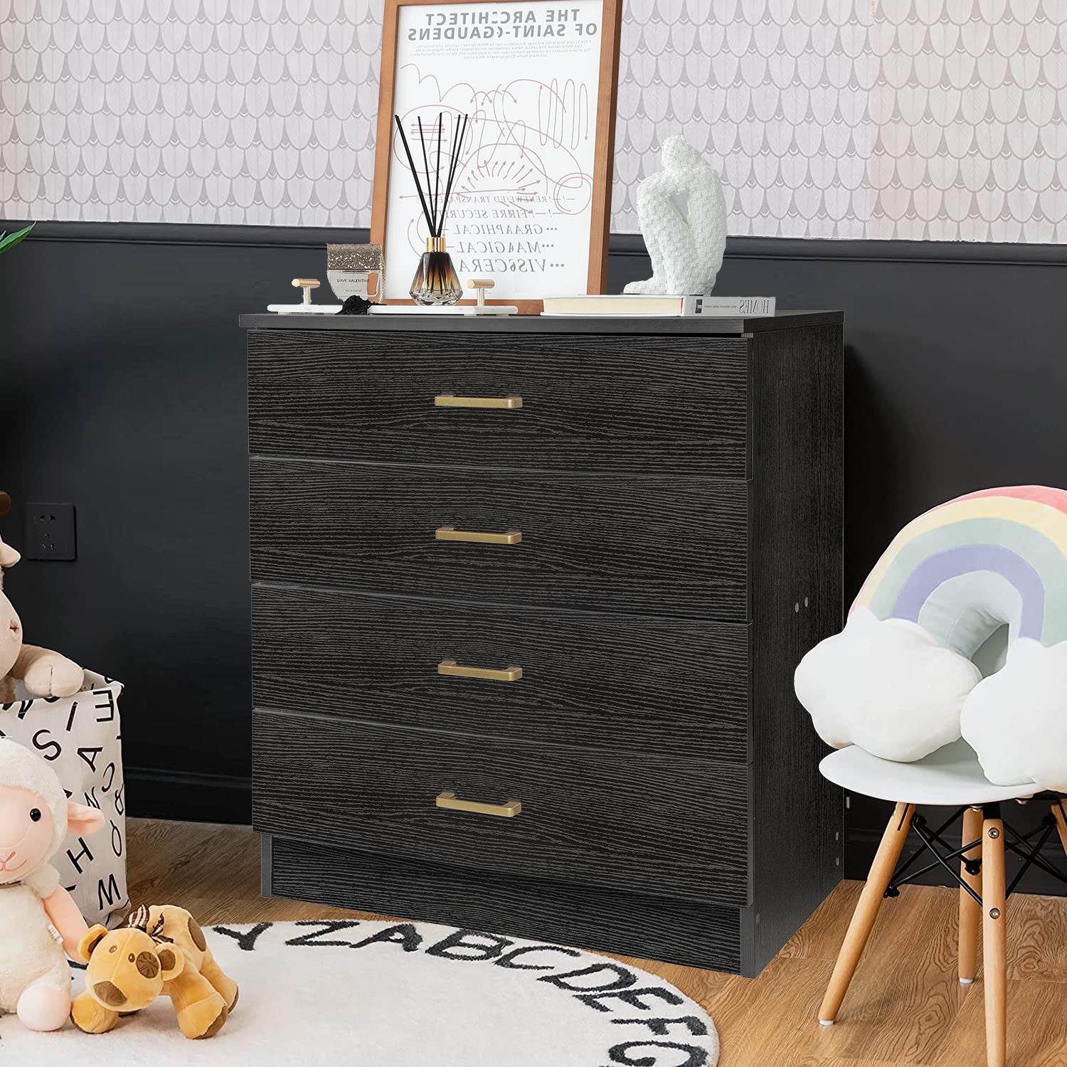 LARGE COMPACITY STORAGE - The cabinet with 4 separate drawers allows you to storage 10-14 T-shirts or dozens of pairs of socks in one drawer. The roomy drawer could keep household items organized, including clothes, toys, cosmetics, daily groceries, and towels.