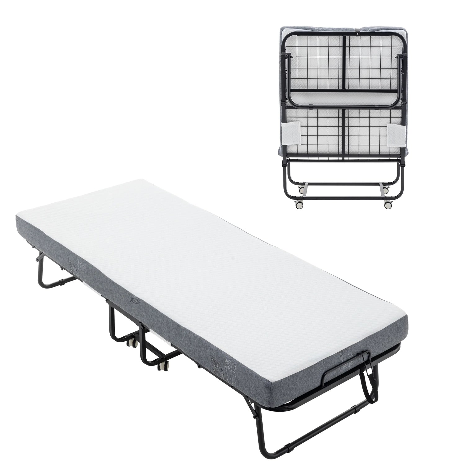 Sesslife 75x38 Folding Bed Bed Frame With Mattress, Roll Away Adult Bed on Wheels for Guests, 3.9-inch Thick Memory Foam Mattress, Space Saving Fold Up Bed for Easy Storage