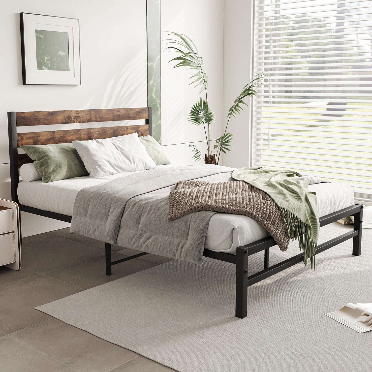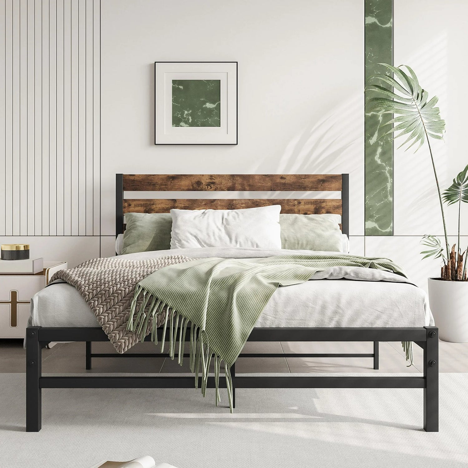 ENYOPRO Black Full Metal Bed Frame, High Metal Platform Bed w/ Wood Headboard, Adults Kids Modern Bed Frame, Mattress Foundation, No Box Spring Needed, Easy Assembly