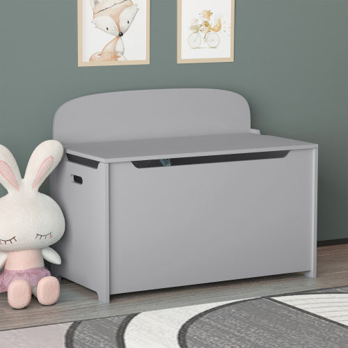 SESSLIFE Gray Bench Top Toy Box, Toy Storage Box Organizer, Entryway Bench with Lift Top, Toy Storage Chest with 2 Safety Hinges