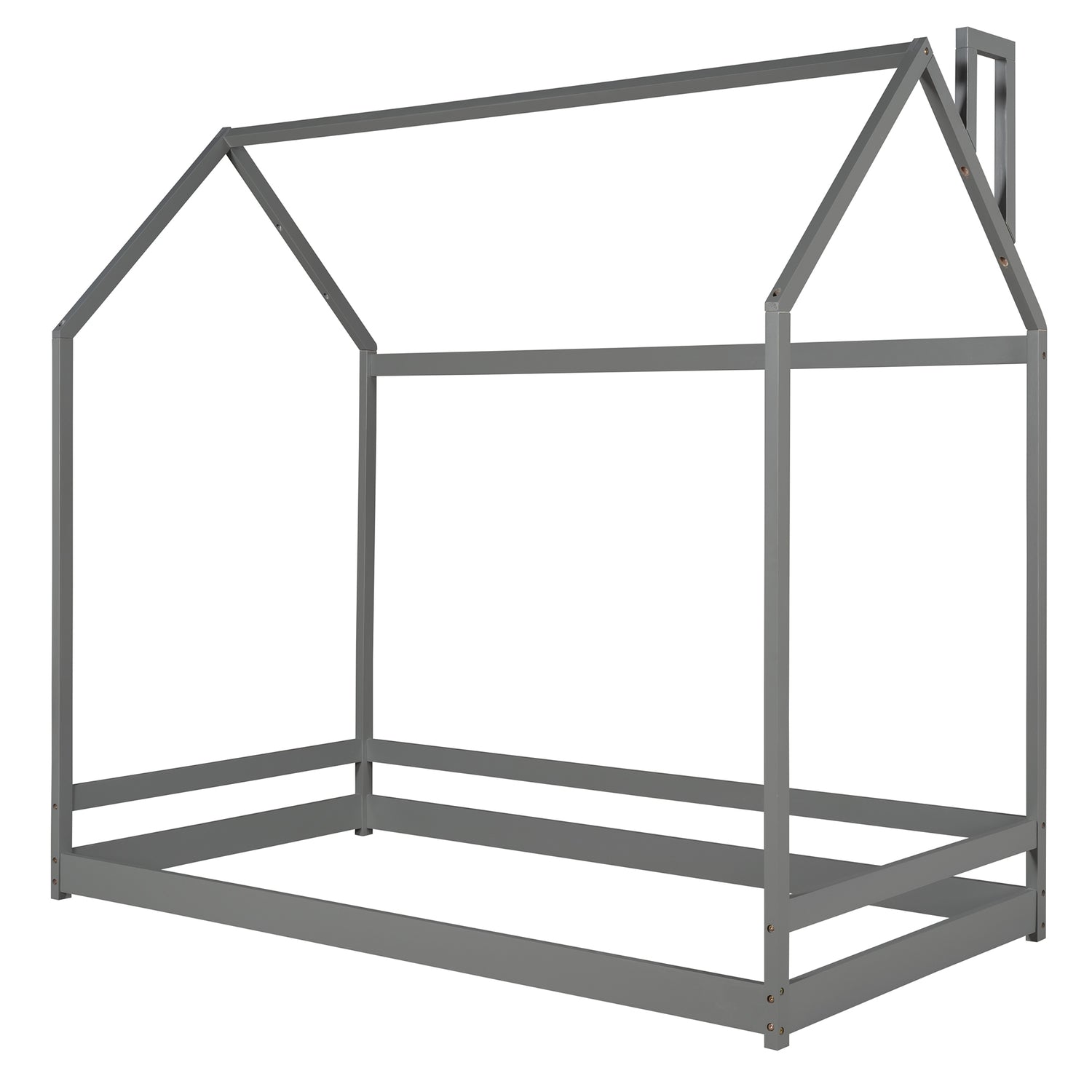 SESSLIFE House Bed Twin, Solid Wood House Bed for Kids, Box Spring Needed (Gray)