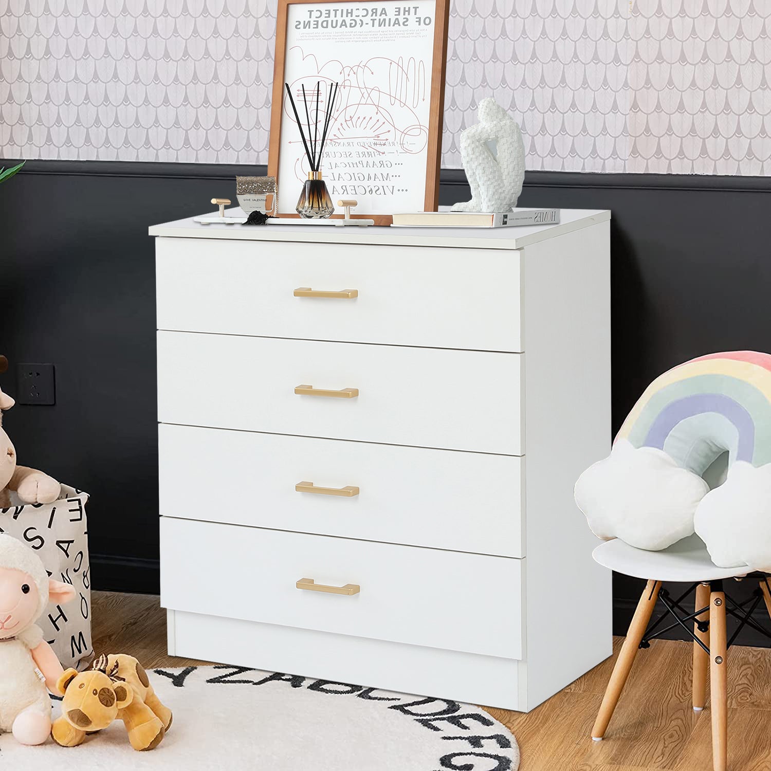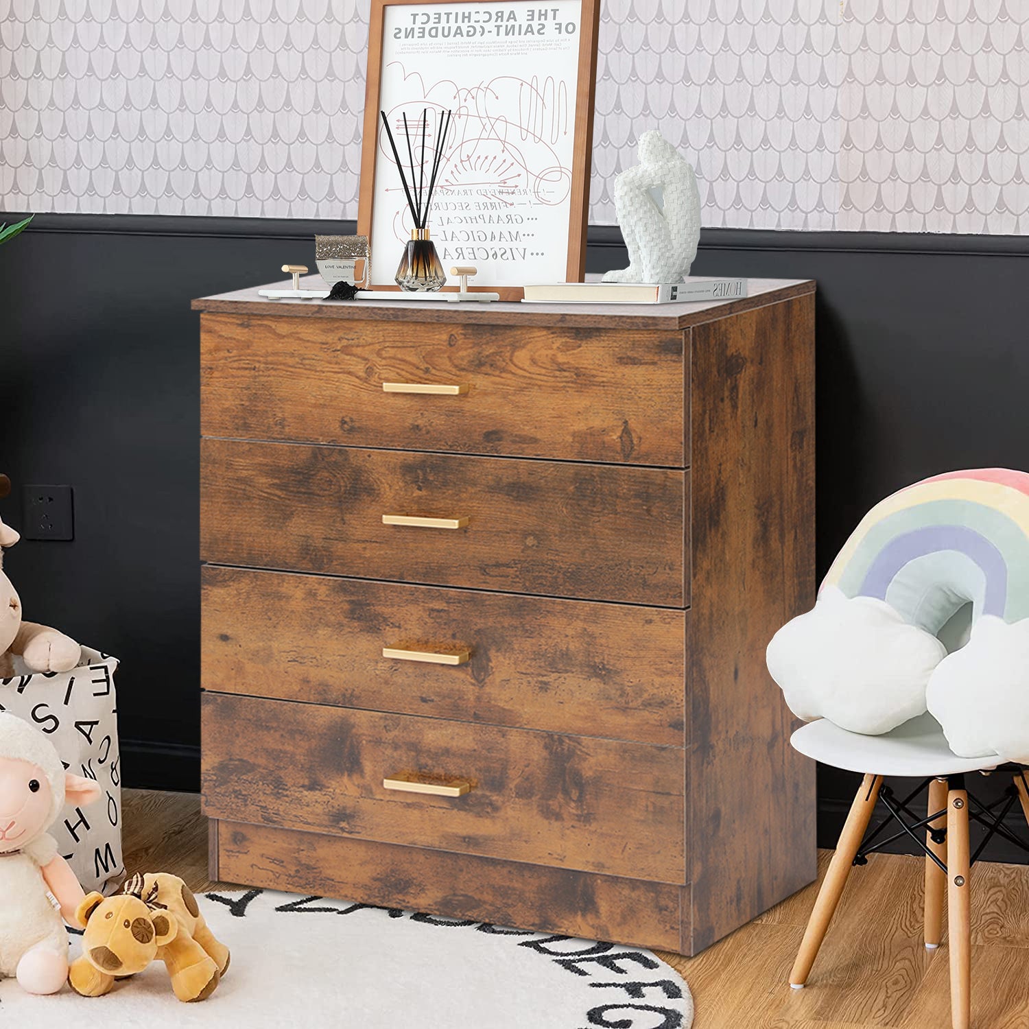 LARGE COMPACITY STORAGE - The cabinet with 4 separate drawers allows you to storage 10-14 T-shirts or dozens of pairs of socks in one drawer. The roomy drawer could keep household items organized, including clothes, toys, cosmetics, daily groceries, and towels.