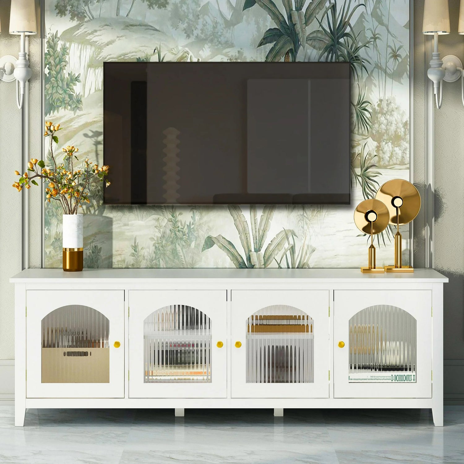Sesslife Modern 71” TV Stand for TVs up to 80 inches, Glass Door Television Cabinet & Entertainment Center with Storage Shelves, Wood Media Console Table for Bedroom, Living Room, White