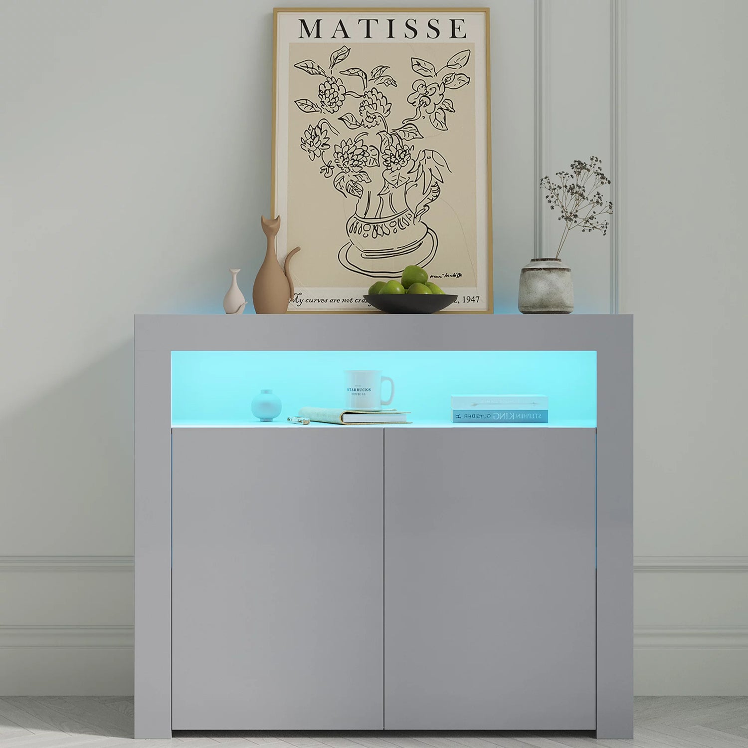 SESSLIFE Modern High Gloss Sideboard Buffet Storage Cabinet with 16 LED Lights and 2 Doors, Black Cupboard for Kitchen, Dining Room and Living Room