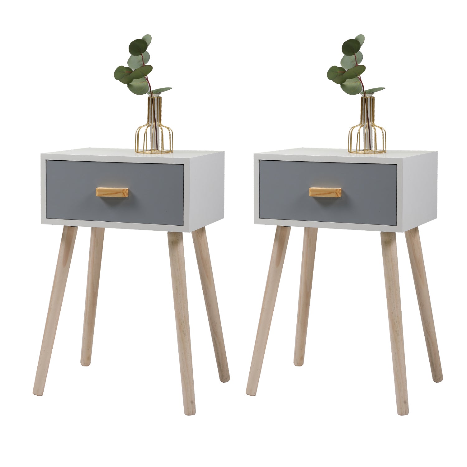 Sesslife Night Stand Set of 2, Solid Wood Legs Furniture Bedside Table, Modern End Side Table with 2 Drawers, Versatile Nightstand for Bedroom Sofa Entryway, Gray
