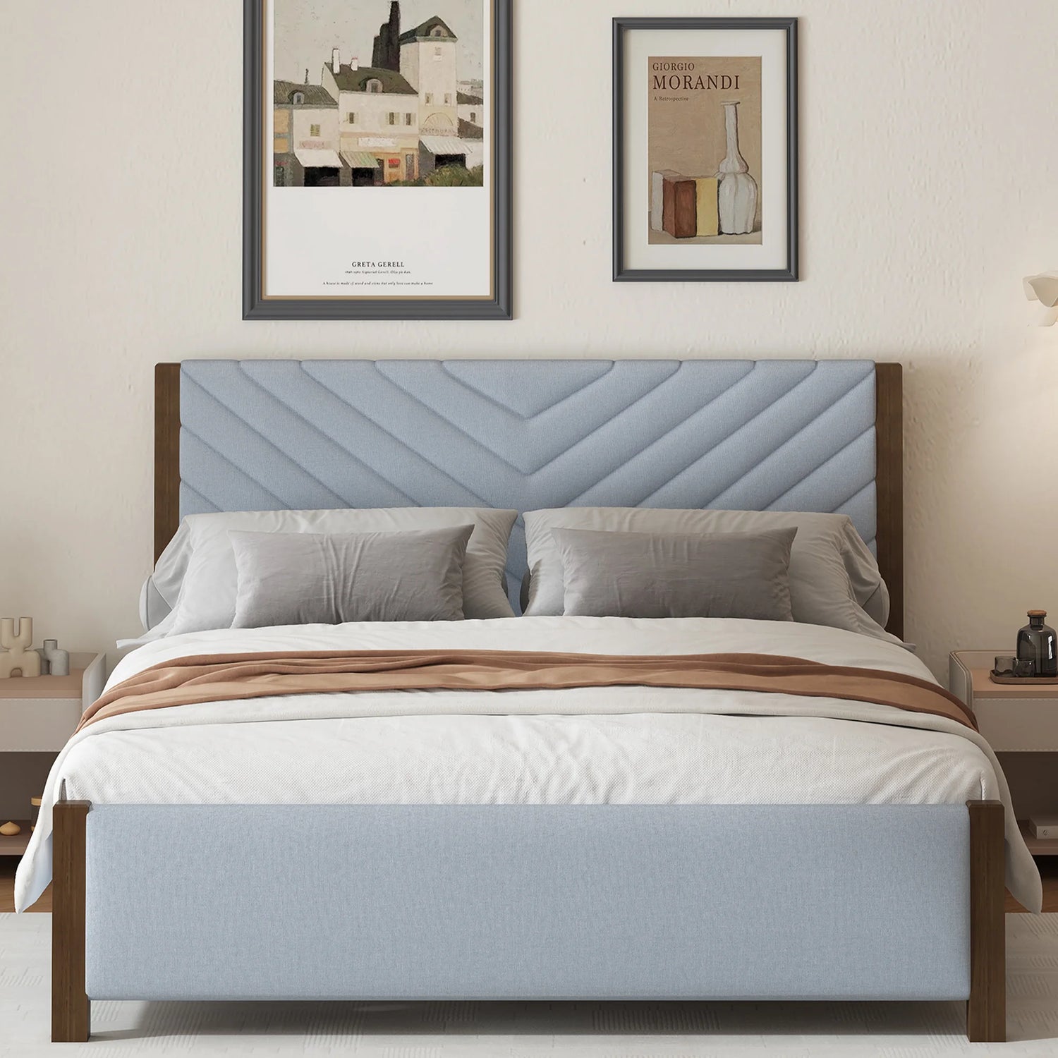 UHOMEPRO beautiful Upholstered Platform Bed features an upholstered headboard that adds a contemporary chic look to your bedroom and is filled with thick foam to add extra comfort. Sturdy Wood frame construction and a wooden slat system add extra stability and safety.