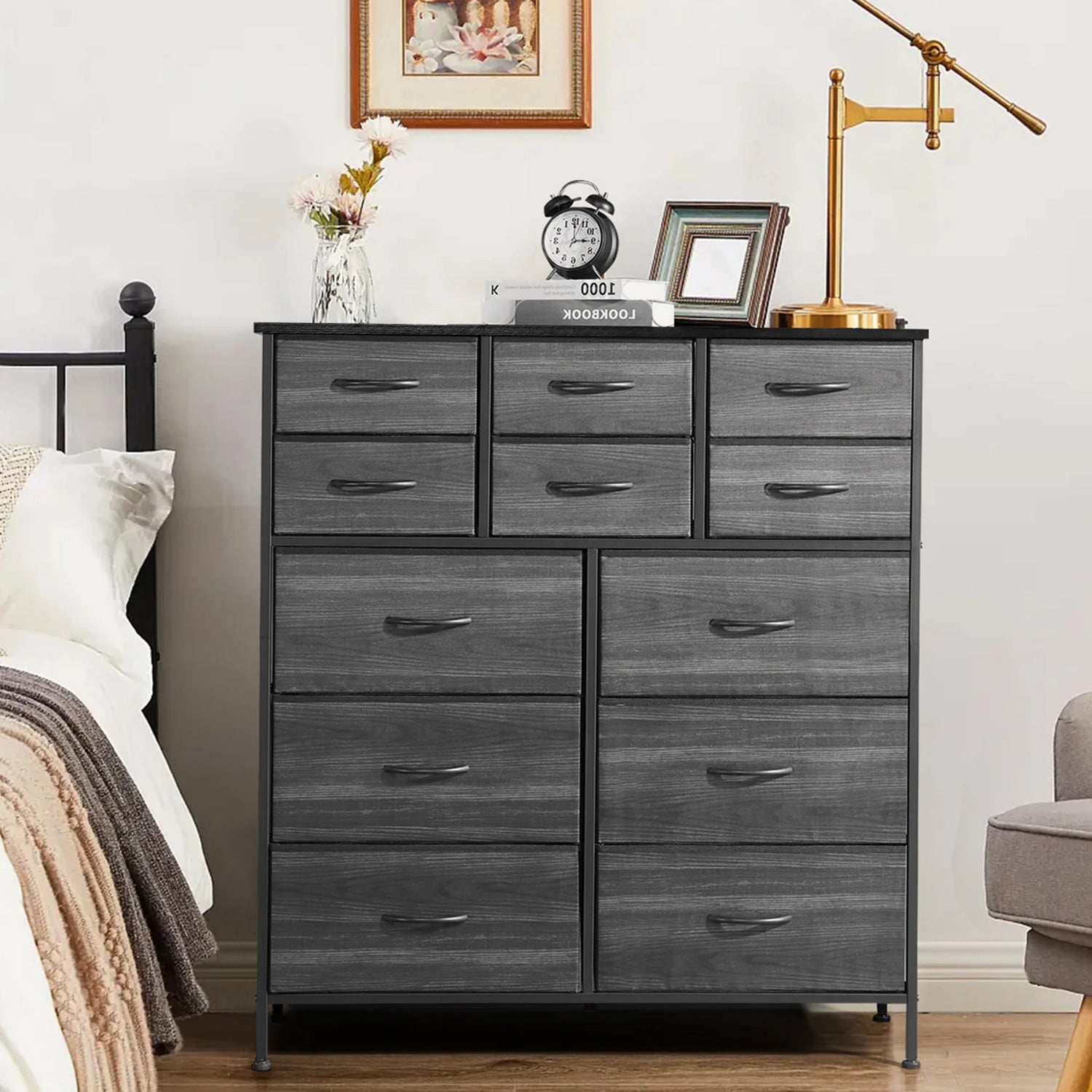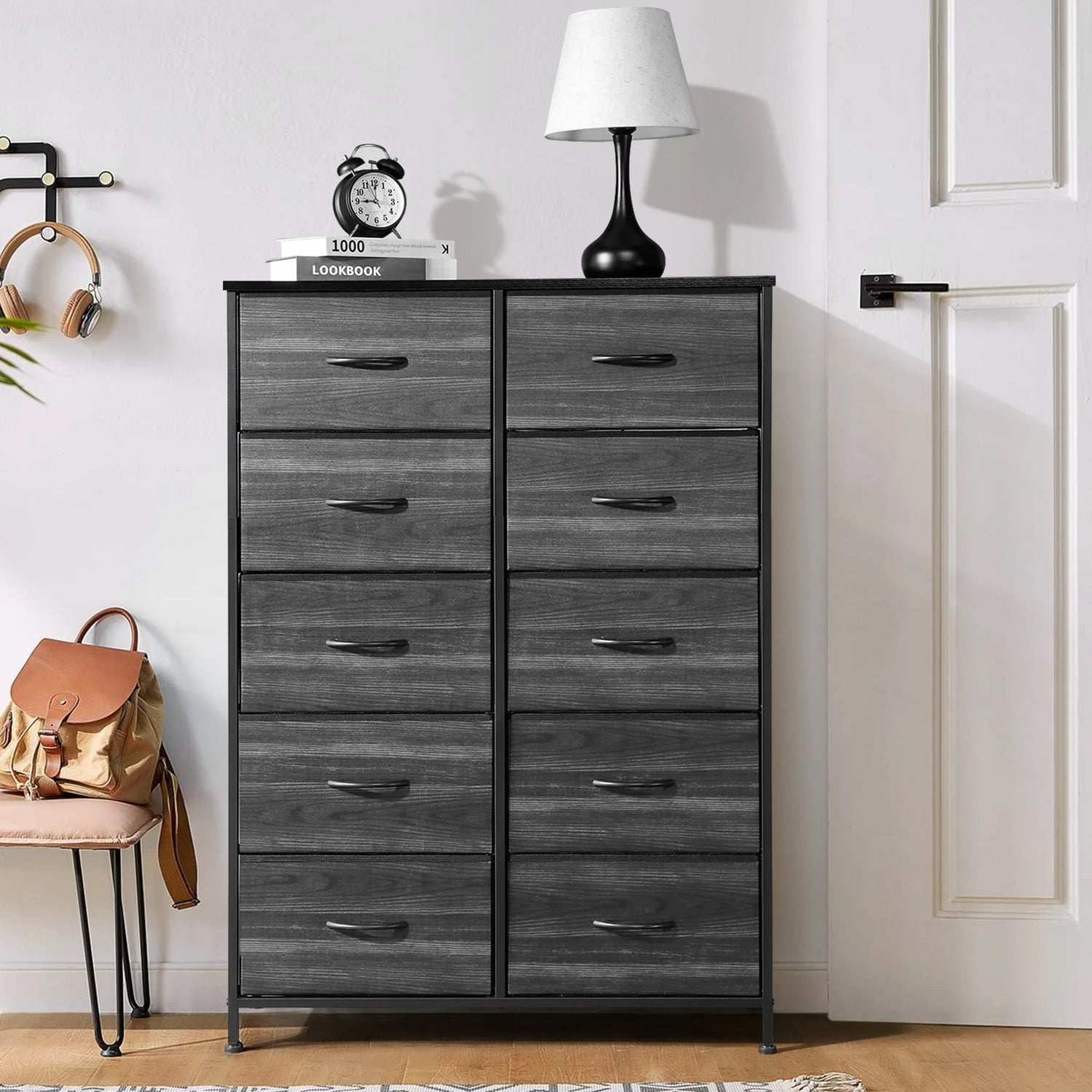 Sesslife 10 Drawers Fabric Dresser, Clothes Cabinet Storage Organizers, Fabric Dresser for Kids and Adults, Chest of Drawers with Steel Frame and Wooden Top for Bedroom, Living Room, Hallway